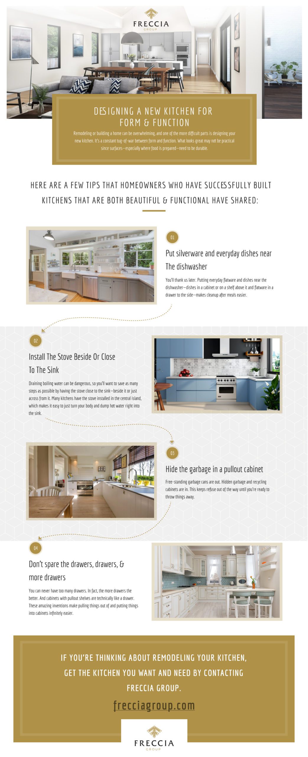 Remodeling or building a home can be overwhelming, and one of the more difficult parts is designing your new kitchen. It’s a constant tug-of-war between form and function. Here are a few tips to make sure you balance the two.