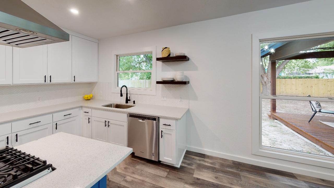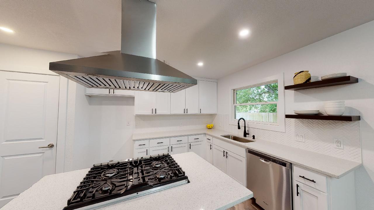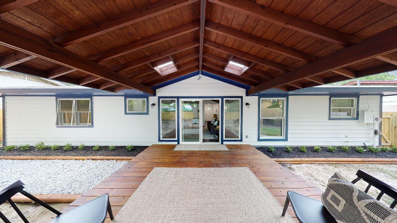 Why It’s Special: In it’s original form, we saw so much potential for this home even though its 4/2 floor plan was so awkward. But we really opened things up and converted it to a 3/2 with a true Master Bedroom with its huge window and a hidden shower in the bathroom (see if you can find it!). The kitchen is a perfect open-concept plan with an island cooktop and hood with a wonderful view of the covered patio in the back. You’ll love entertaining on the wood deck in the back patio with its stained wood patio cover and skylights.