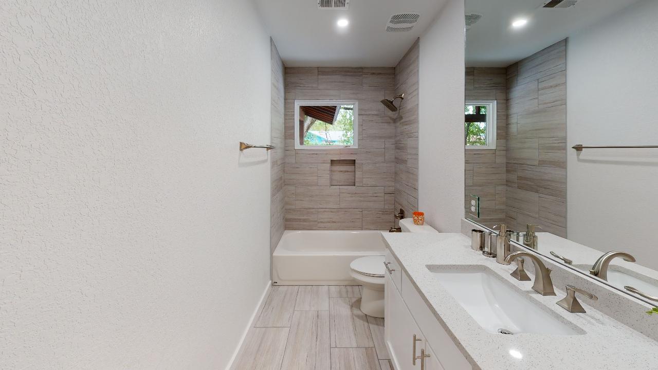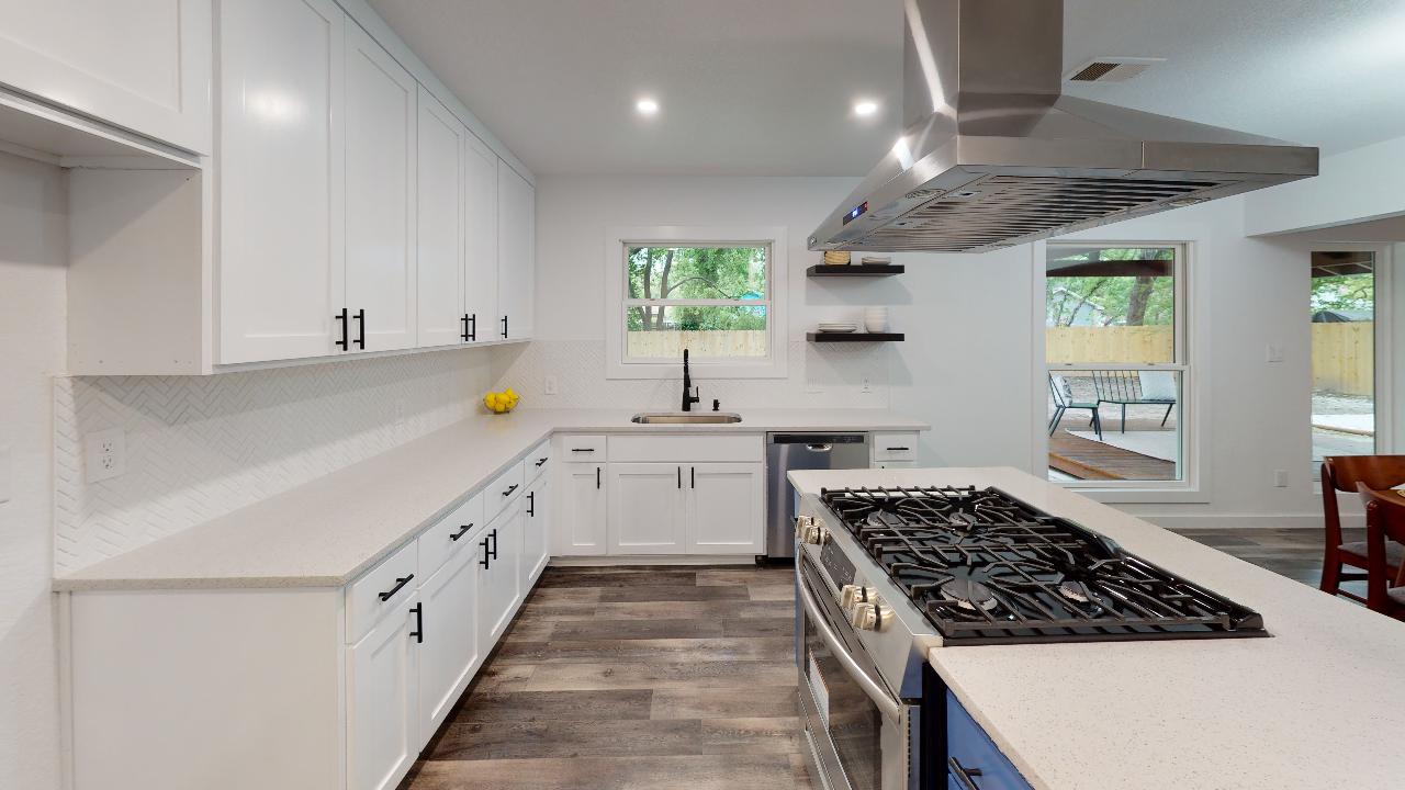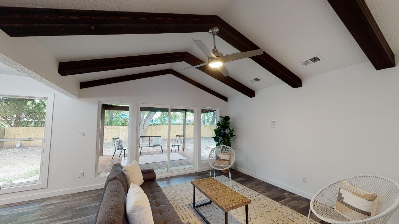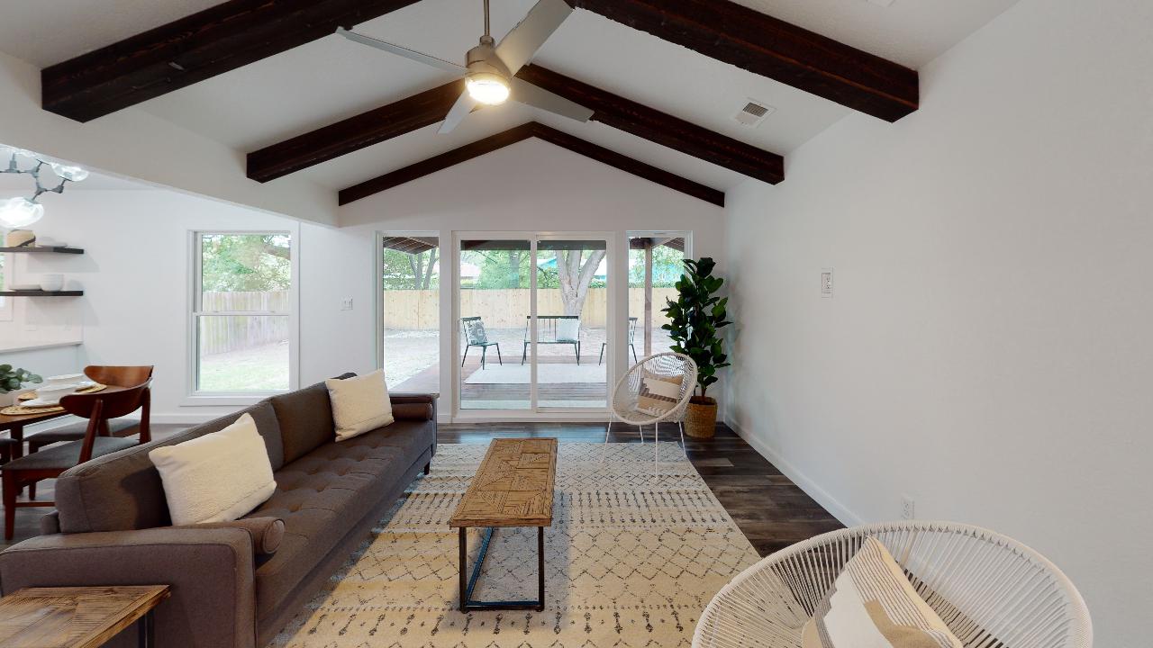 Why It’s Special: In it’s original form, we saw so much potential for this home even though its 4/2 floor plan was so awkward. But we really opened things up and converted it to a 3/2 with a true Master Bedroom with its huge window and a hidden shower in the bathroom (see if you can find it!). The kitchen is a perfect open-concept plan with an island cooktop and hood with a wonderful view of the covered patio in the back. You’ll love entertaining on the wood deck in the back patio with its stained wood patio cover and skylights.